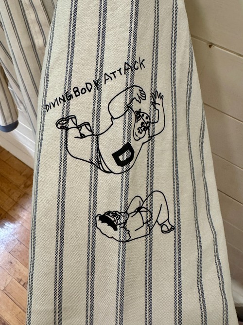 遊び心あふれるイラストが散りばめられたスナップボタンのリブ袖シャツ。