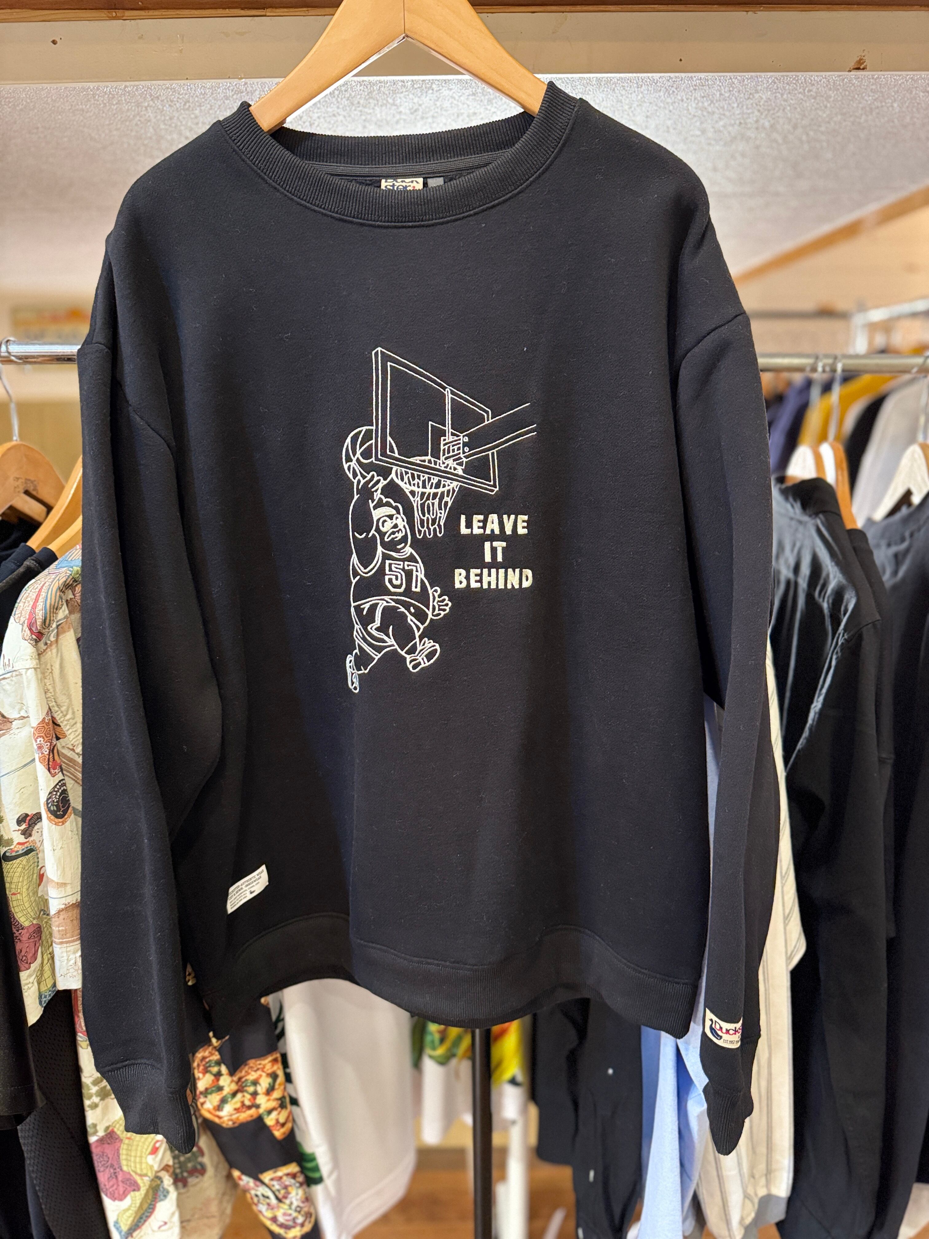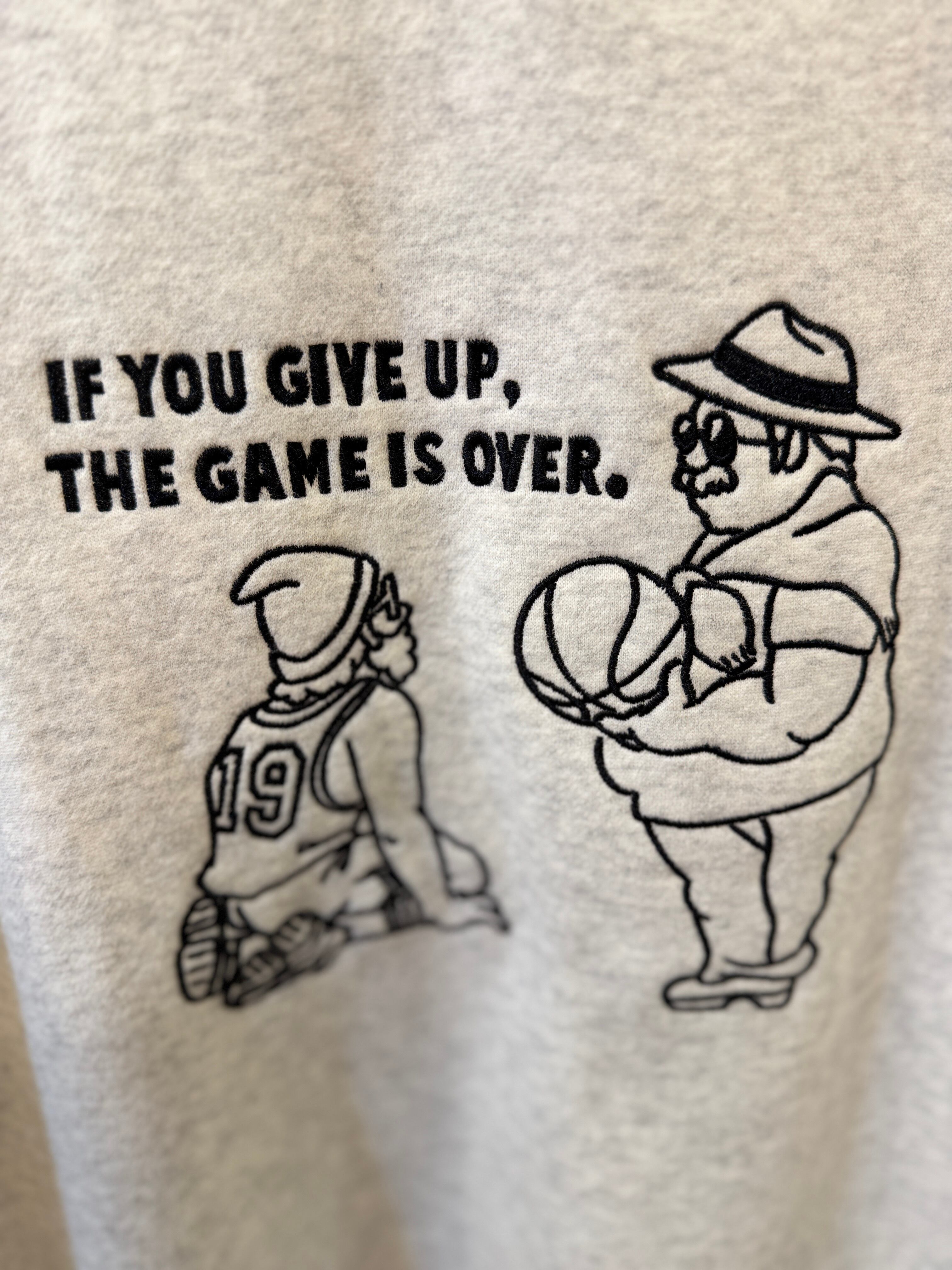 バスケットボールの名シーンを刺繍で表現したクルーネックスウェット