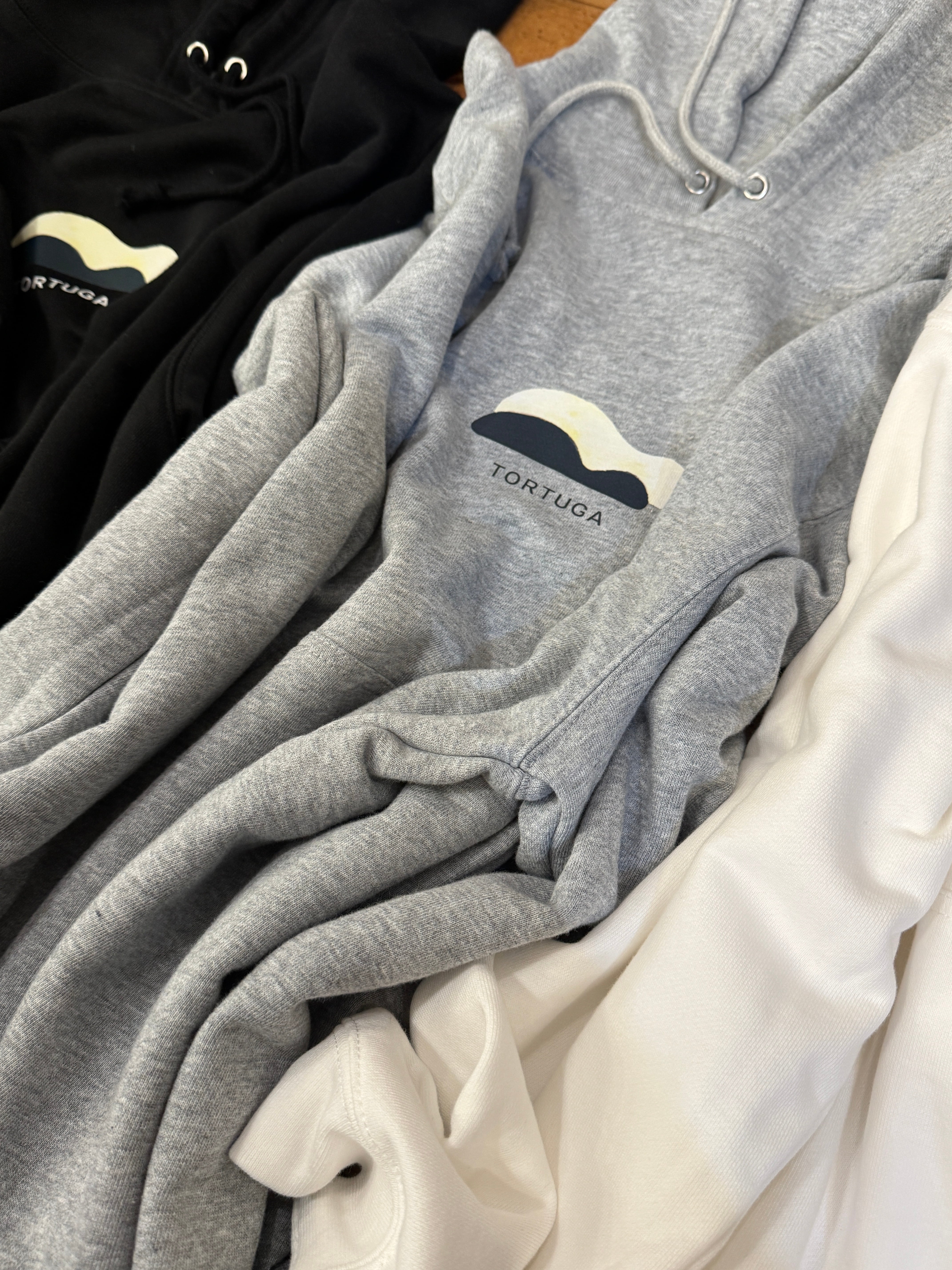 胸元にさりげなく入った、TORTUGAオリジナルロゴ。